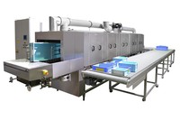 PROGRESS 702 - 400Myčka přepravek a obalů - Modulární dvoustopé průběžné mycí zařízení s průchozí výškou 400 mm pro obě stopy a přestavitelným bočním vedením umožňující kombinované mytí obalů různých rozměrů v jednom stroji. |