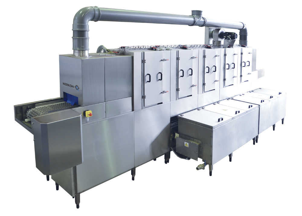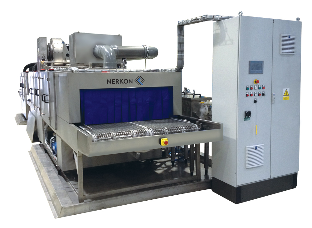 PROGRESS 901 - 1200Průchozí jednopásová pračka se dvěma stopama pro čištění a odmašťování dílů s šířkou dopravníku 1200mm. |
