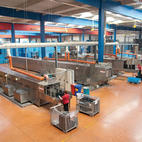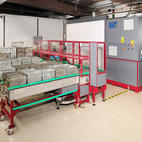 Fotografie z použití mycího zařízení PROGRESS v logistickém depu, kde se čistí obaly pro automobilový průmysl, jako jsou KLT přepravky, palety, blistry a víka.